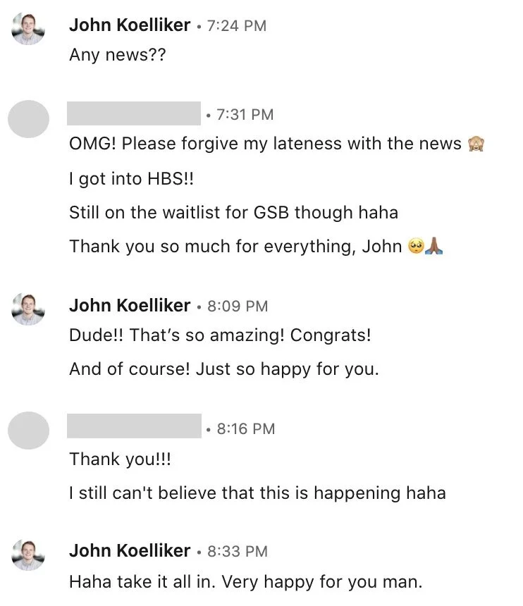 Deferred MBA’s founder, John Koelliker, explored countless ways to lower the cost of high-quality admissions consulting, and Leland is the product of that mission.